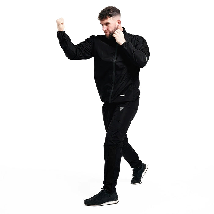 Ignite your workouts with the RDX C1 sweat suit. REACH & OEKO-TEX 100 compliant; it delivers 5x sweat power. Featuring Heat Suit„ Tech with a unique silver lining in Instant Sweat„ Fabric, this eco-friendly warrior offers a hugging fit, reflective accents, and indoor-outdoor versatility. Sculpt, sweat, and shine as you conquer any workout naturally.