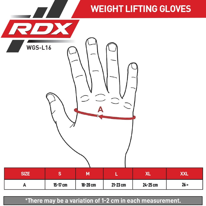 Utility and comfort are the ideals upon which the new RDX Sports gym gloves were designed. Made with Lycra fabric for its compressional feel, these fitness gloves cling to hand form for a snug wear. Authentic goat leather promises resilience while gel padded palms and fingers works to alleviate pressure from heavy lifting. The antimicrobial inner and half-cut fingers work together to offer an improved grip. 4-way stretch detailing and perforated fingers keeps hands agile and fully ventilated. Pull tabs allow for easy on/off application. Quick-EZTM Hook-and-Loop wraps around the wrist for support. These fitness gloves are ideal for gym use as well as outdoor use in rowing, pull ups etc.(SMALL & MEDIUM SIZES RECOMMENDED FOR UP TO 14 YEARS OF AGE)