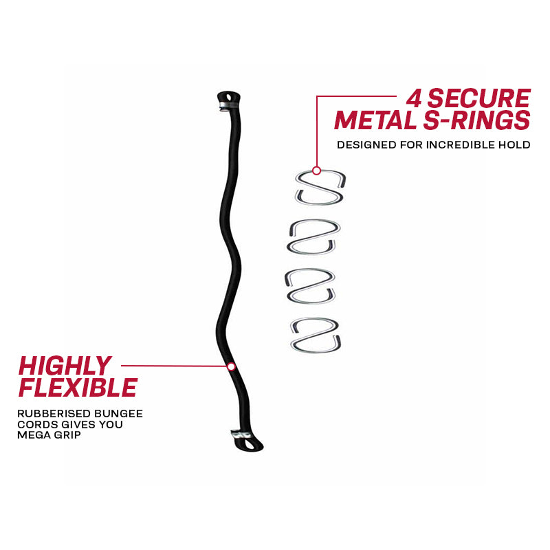 - Comes with heavy-duty nylon strap & adjustable rubber bungee cord that measures up to 48"